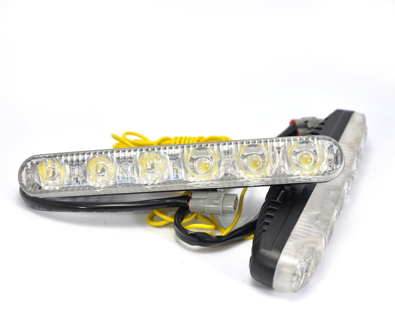 Денні ходові вогні (ДХВ) з металевим корпусом. 6 лазерних діодів (3 увігнутих лінзи і 3 опуклих), евророз'єми для підключення. Додатковий провід, при підключенні якого ДХВ світять помаранчевим кольором. Розміри: 169х21х25(36)